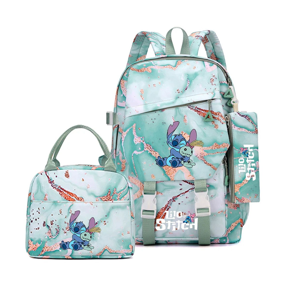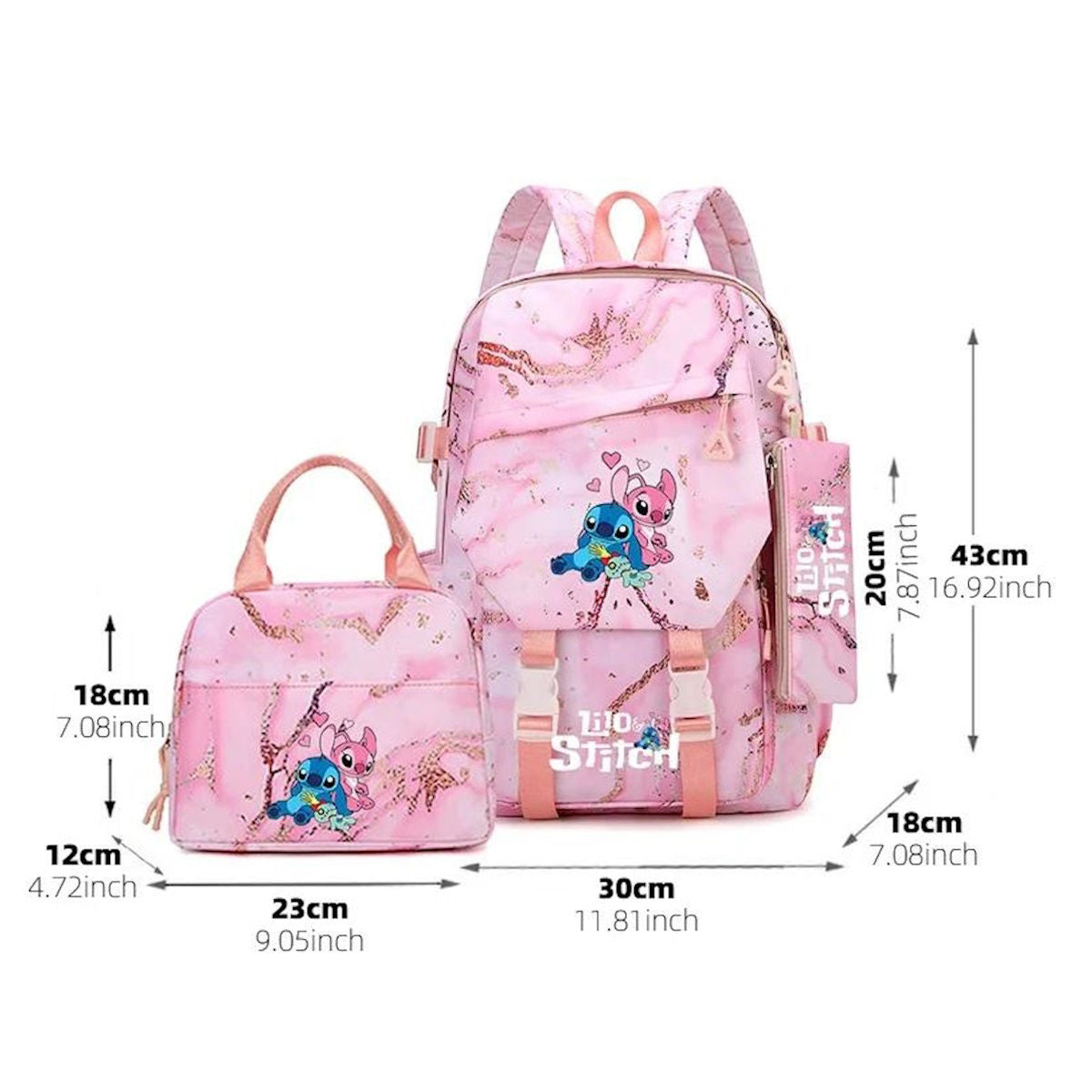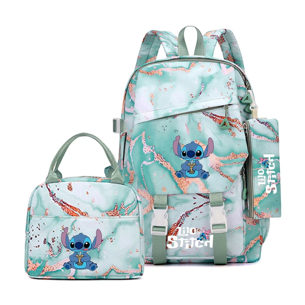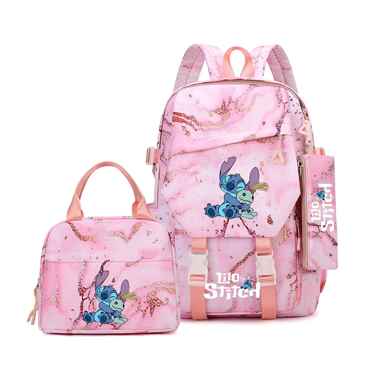 Conjunto de 3 mochilas y estuches para lápices estilo preppy Stitch