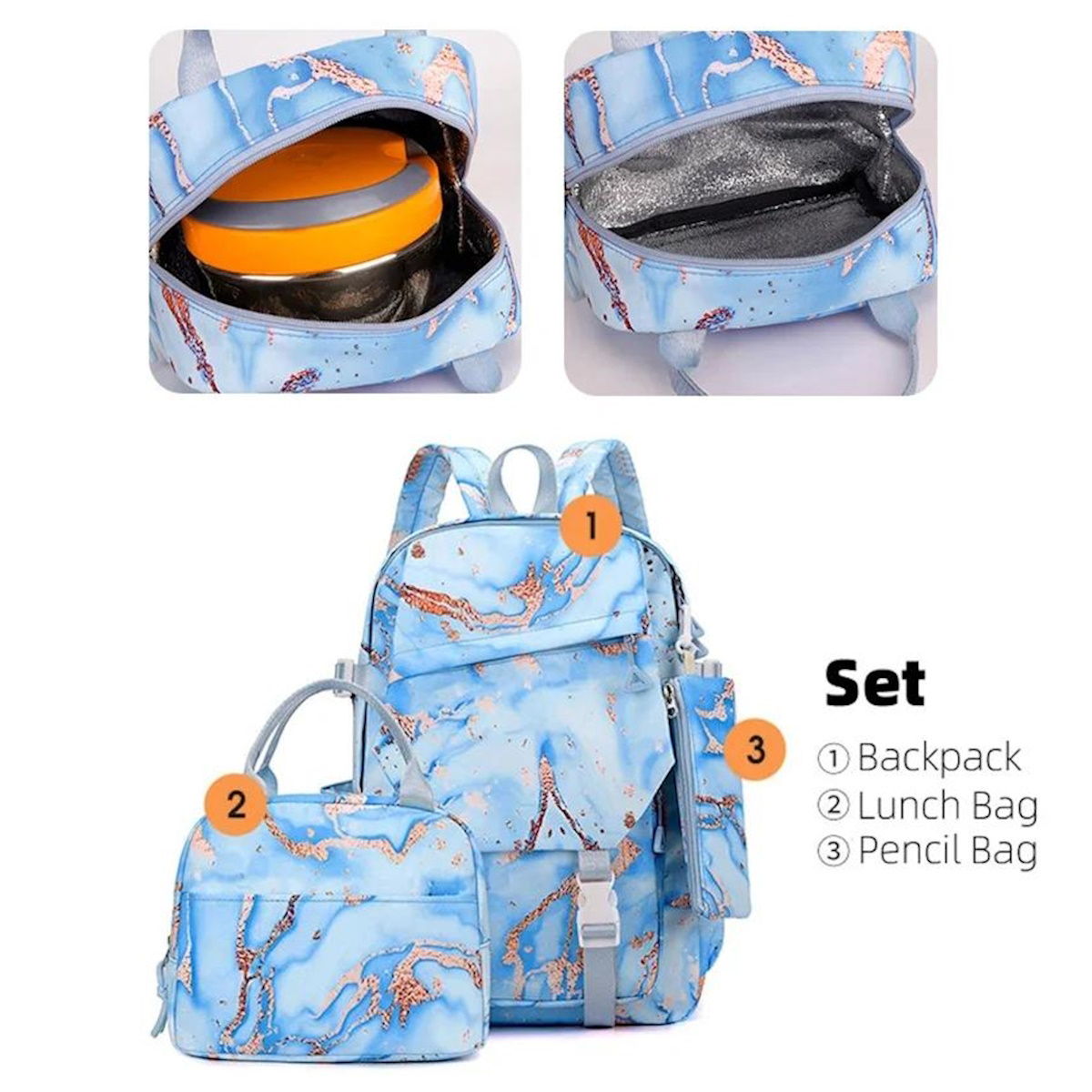 Tamaño: Mochila: 43*30*18cm (16,92*11,81*7,08 pulgadas); Bolsas de almuerzo: 23*18*12cm (9,05*7,08*4,72 pulgadas); Estuche para lápices: 20*18cm (7,87*7,08 pulgadas);
