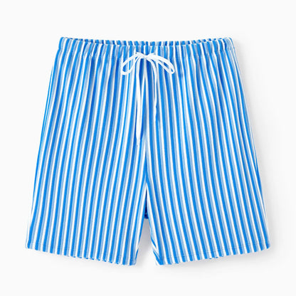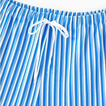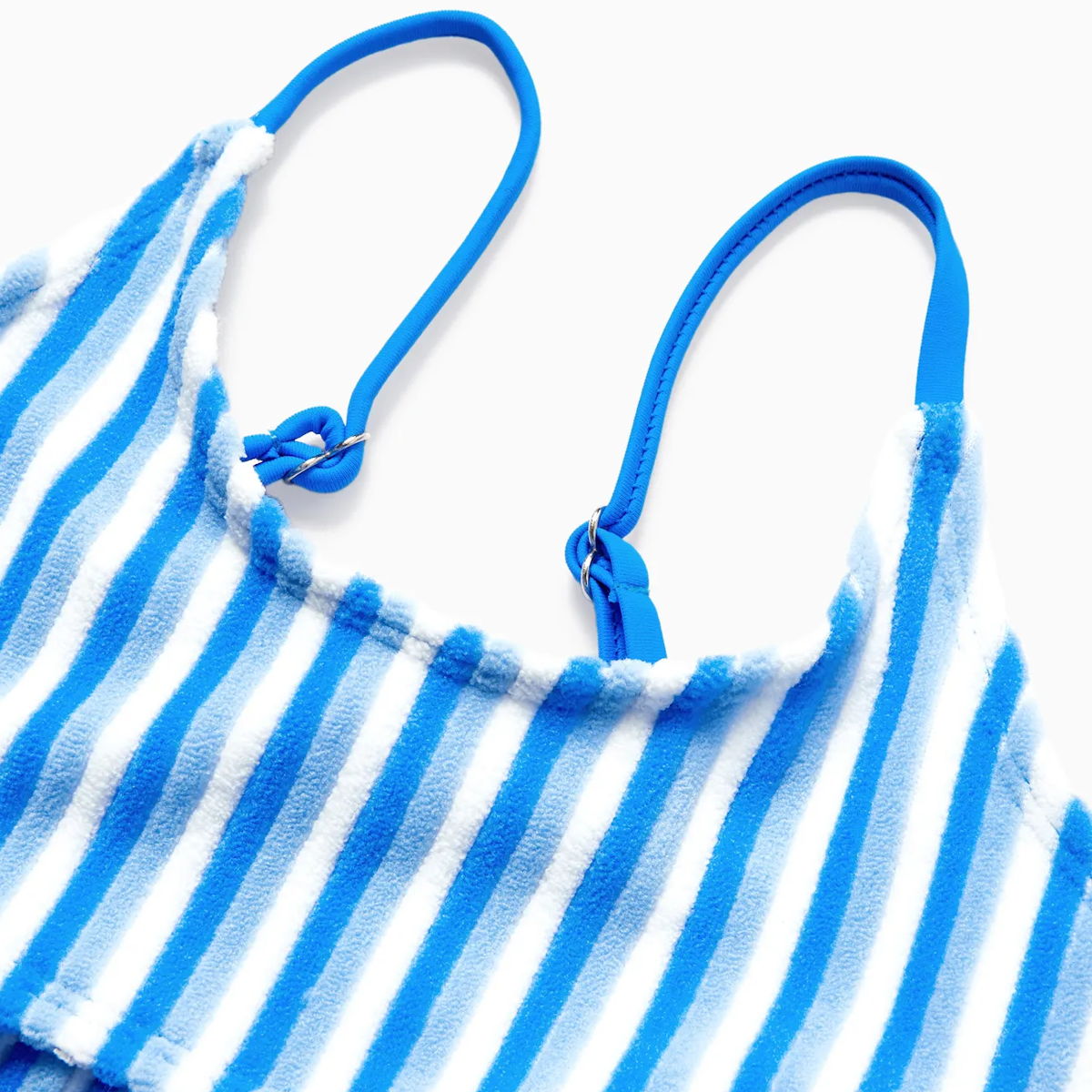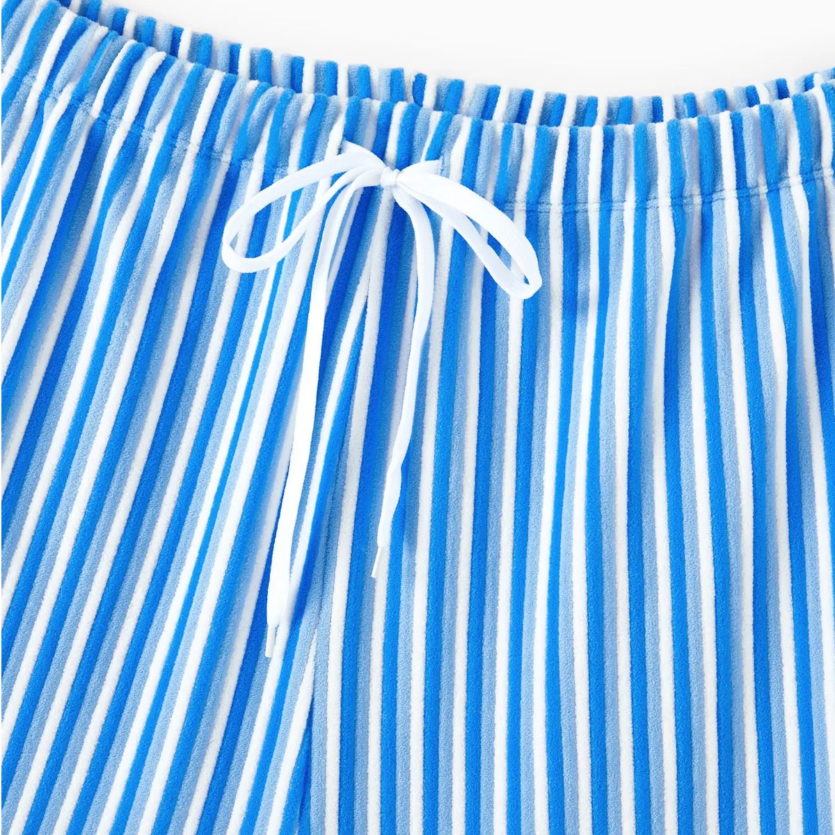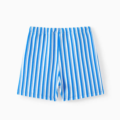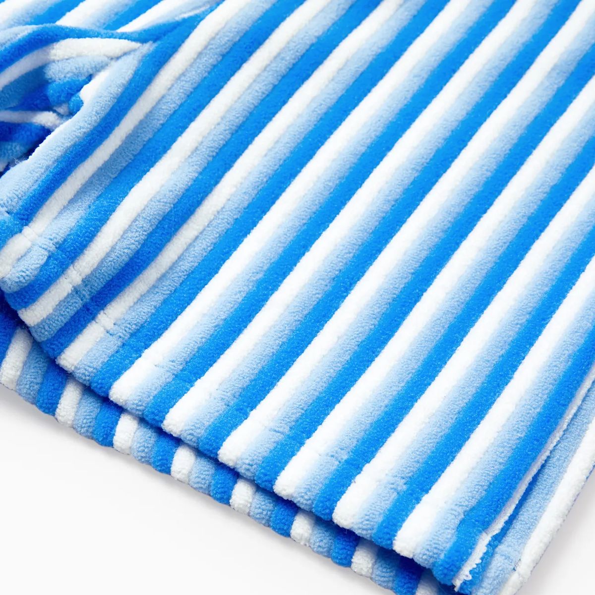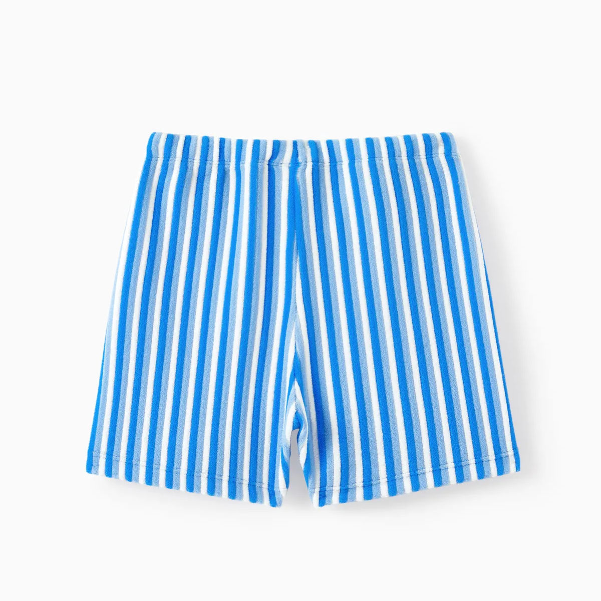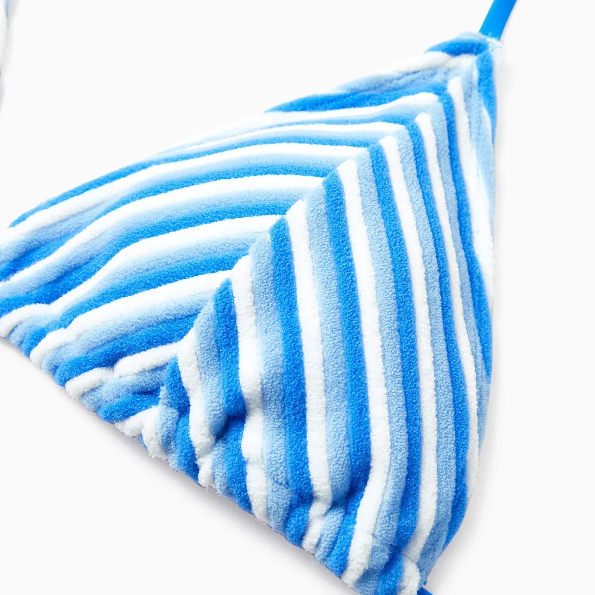 Nombre del artículo: Conjunto de bikini triangular a rayas azules con cuello halter, traje de baño familiar a juego con toalla y bañador a rayas. Tipo de producto: Conjuntos familiares a juego; Trajes de baño familiares a juego; Categoría de producto:Trajes de baño familiares a juego > Trajes de baño familiares a juego ; Material: poliéster; Color: Azul, Blanco; Detalles: Conjunto de bikini triangular de rayas azules para mujer, traje de baño de dos piezas con cuello halter; Traje de baño de dos piezas con volantes y rayas azules para niñas, de talle alto; Bañador con cordón y rayas azules a juego para padre e hijo; Estilo Patrón: Azul, Rayado, Azul claro, Triángulo, Cuello halter, Traje de baño de toalla a juego familiar, Volantes, Cordón, Bañador, Almohadilla extraíble, Verano, Orilla del mar, Playa, Piscina, Aguas termales, Spa, Ambiente de vacaciones; Temporada: Verano;