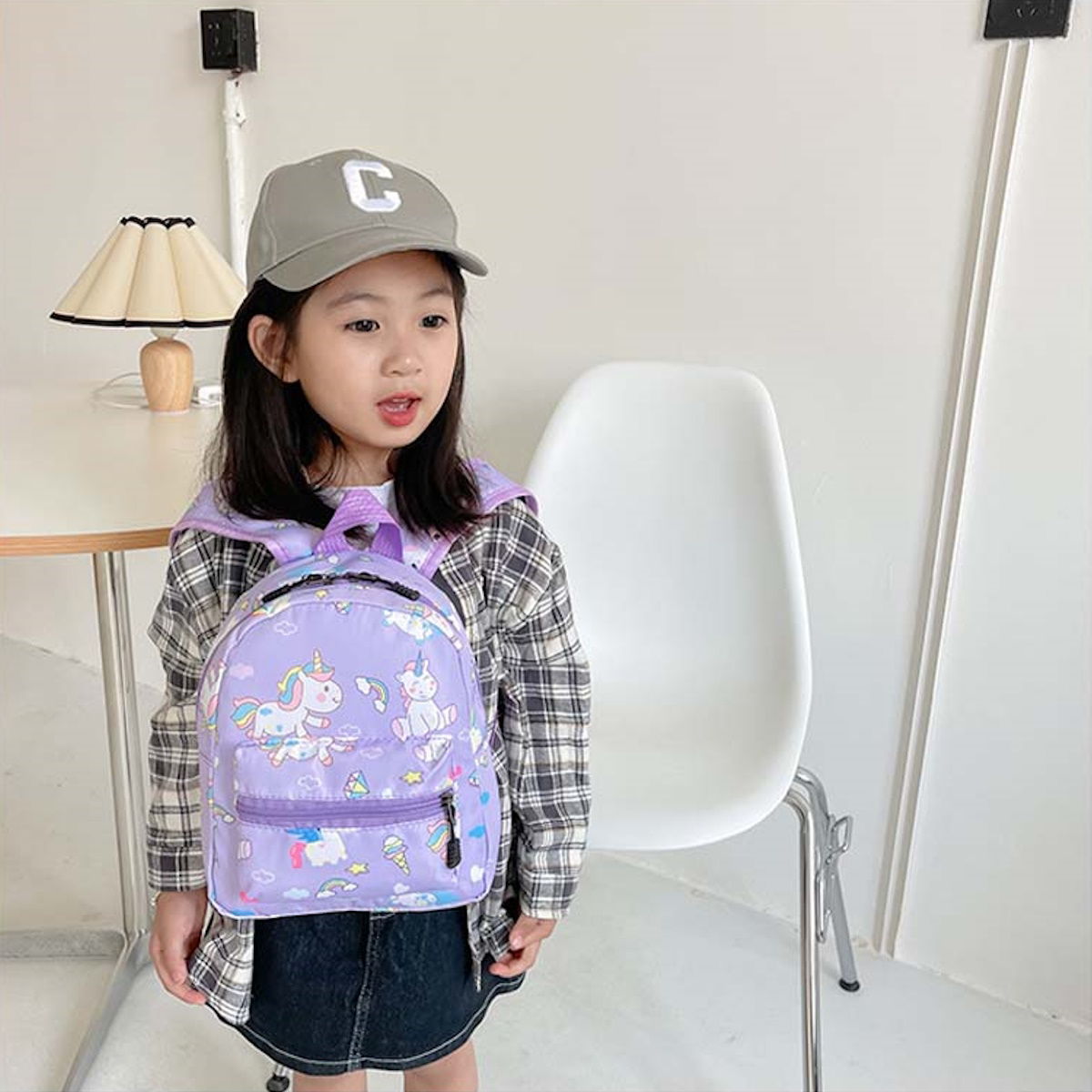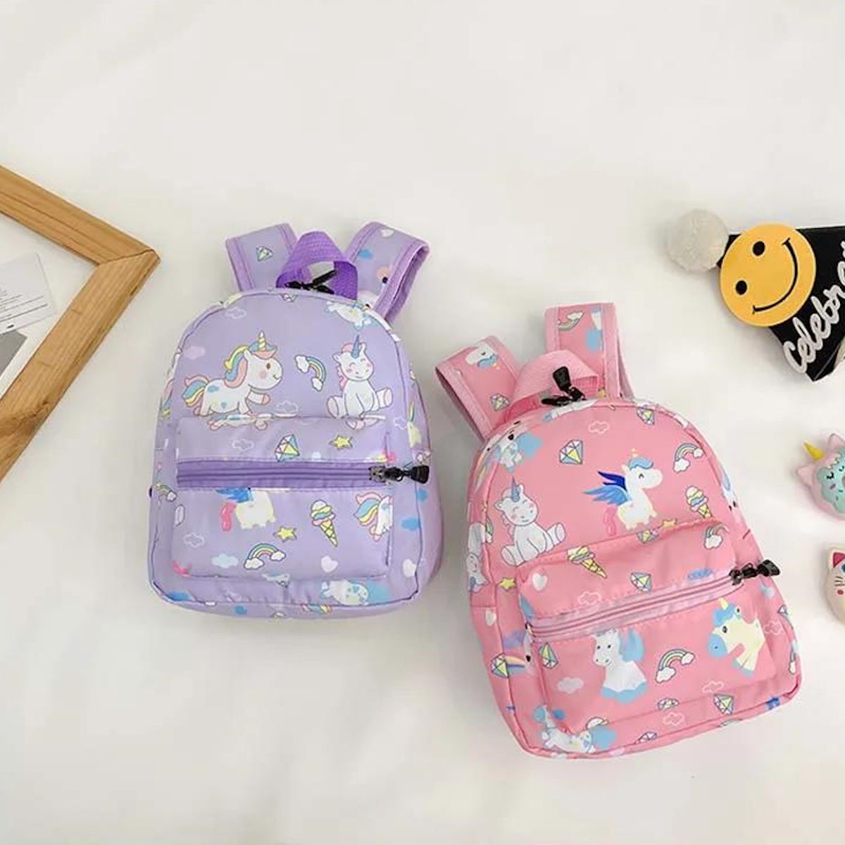 Mochila infantil con diseño de dinosaurio y unicornio para guardería y preescolar.