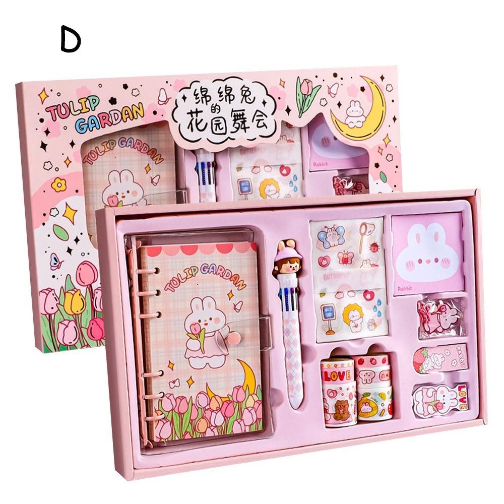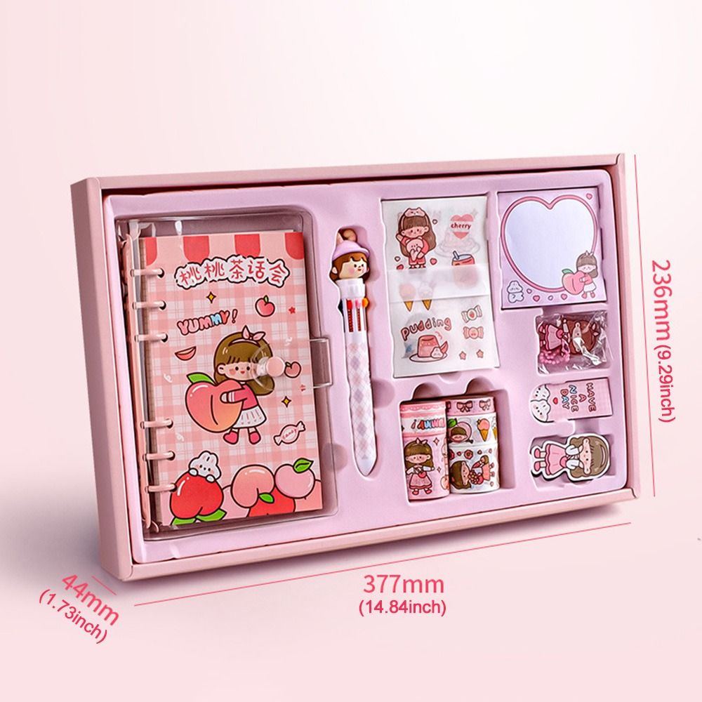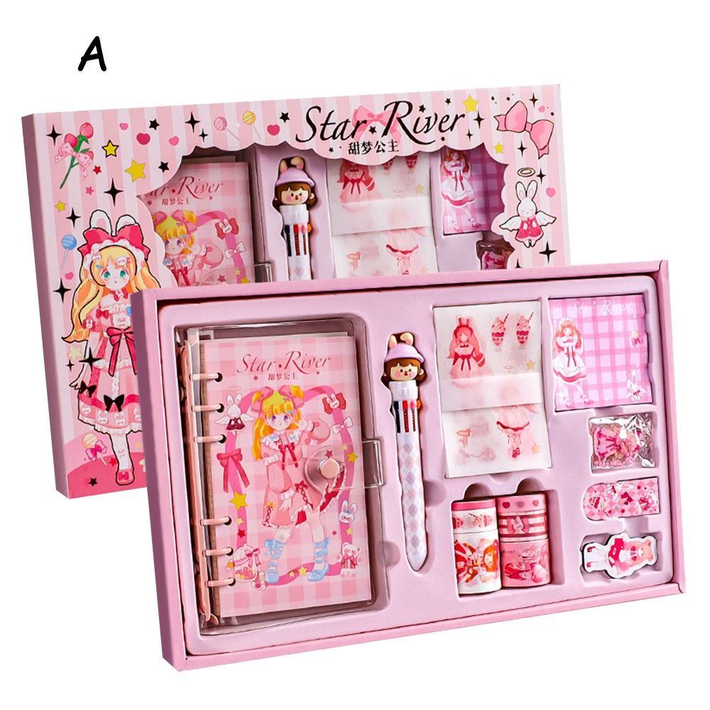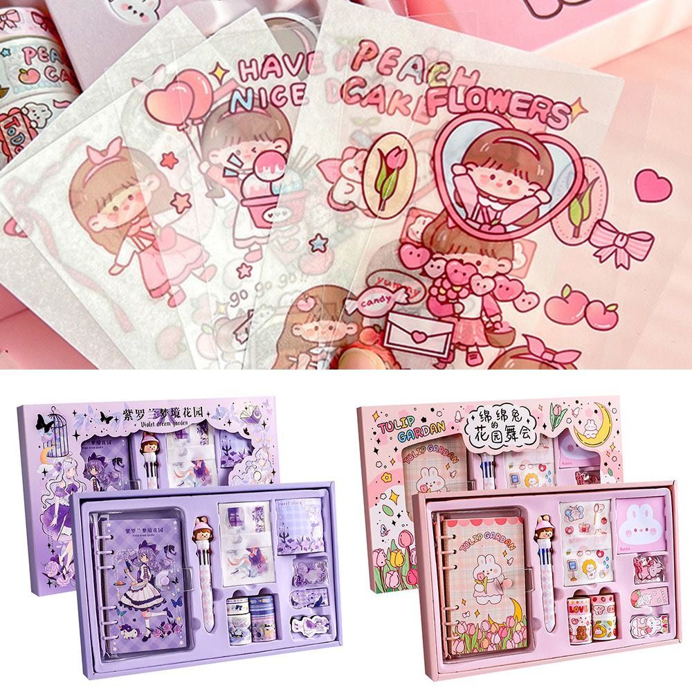Nombre del artículo: Juego de papelería Kawaii, bolígrafos, cuadernos, cinta washi, juego de regalo