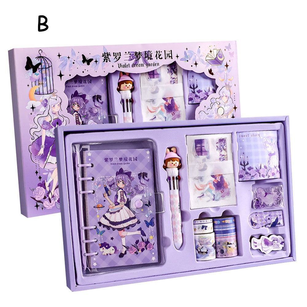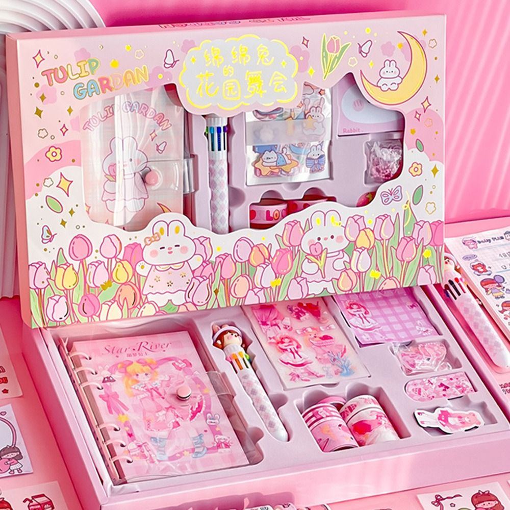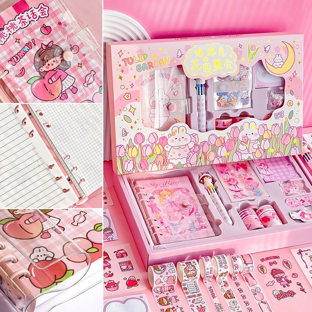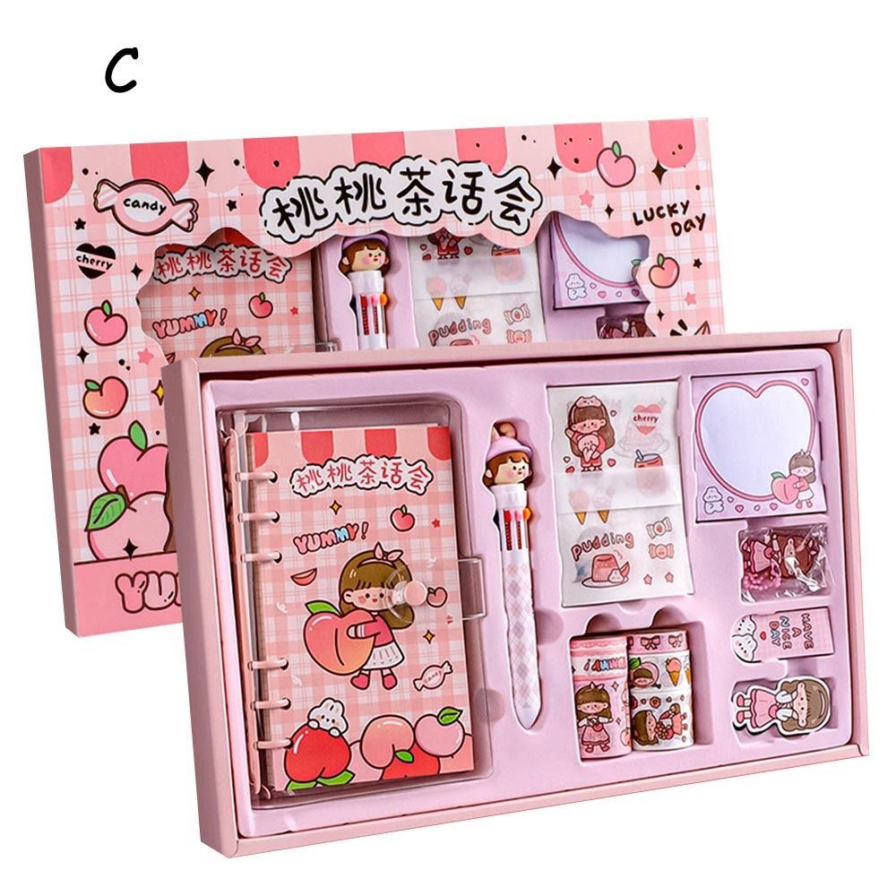 Nombre del artículo: Juego de papelería Kawaii, bolígrafos, cuadernos, cinta washi, juego de regalo