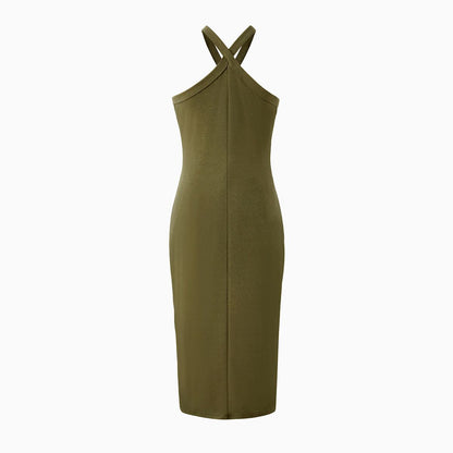 Nombre del artículo: Vestido para mamá y yo, verde militar, cruzado, halter, sin mangas, ajustado, para madre e hija Tipo de producto: Vestido para mamá y yo; Vestido para hermanos; Categoría de producto:Vestido a juego familiar > Vestido para mamá y yo; Material: poliéster; Color: Verde militar; Largo: Vestido hasta la pantorrilla; Estilo Patrón: Color sólido, Vestido con volantes; Sin mangas; Cuello halter; Tirantes finos; Verano; Ambiente festivo; Temporada: Primavera, Verano;
