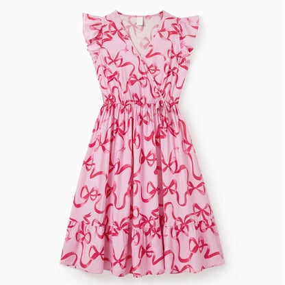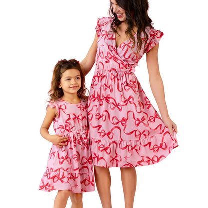 Nombre del artículo: Vestido con cintura elástica y mangas con volantes y lazo rojo para mamá y yo Tipo de producto: Vestido para mamá y yo; Vestido de Pascua para mamá y yo; Vestido para hermanos; Categoría de producto:Vestido a juego familiar > Vestido para mamá y yo; Material: poliéster; Color: Rojo; Largo: Vestido midi; Vestido hasta la rodilla; Patrón de estilo: Vestido sin mangas con volantes y estampado de lazo rojo; Vestido con cintura elástica; Cuello redondo; Día de San Valentín; Ambiente festivo; Temporada: Primavera, Verano; Vestido para invitada de boda; Día de San Valentín;