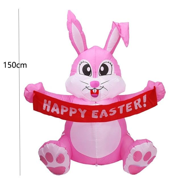 Conejito de Pascua inflable rosa de 1,5 metros con pancarta, juguete para exteriores con luces LED integradas, decoración para jardín y patio.