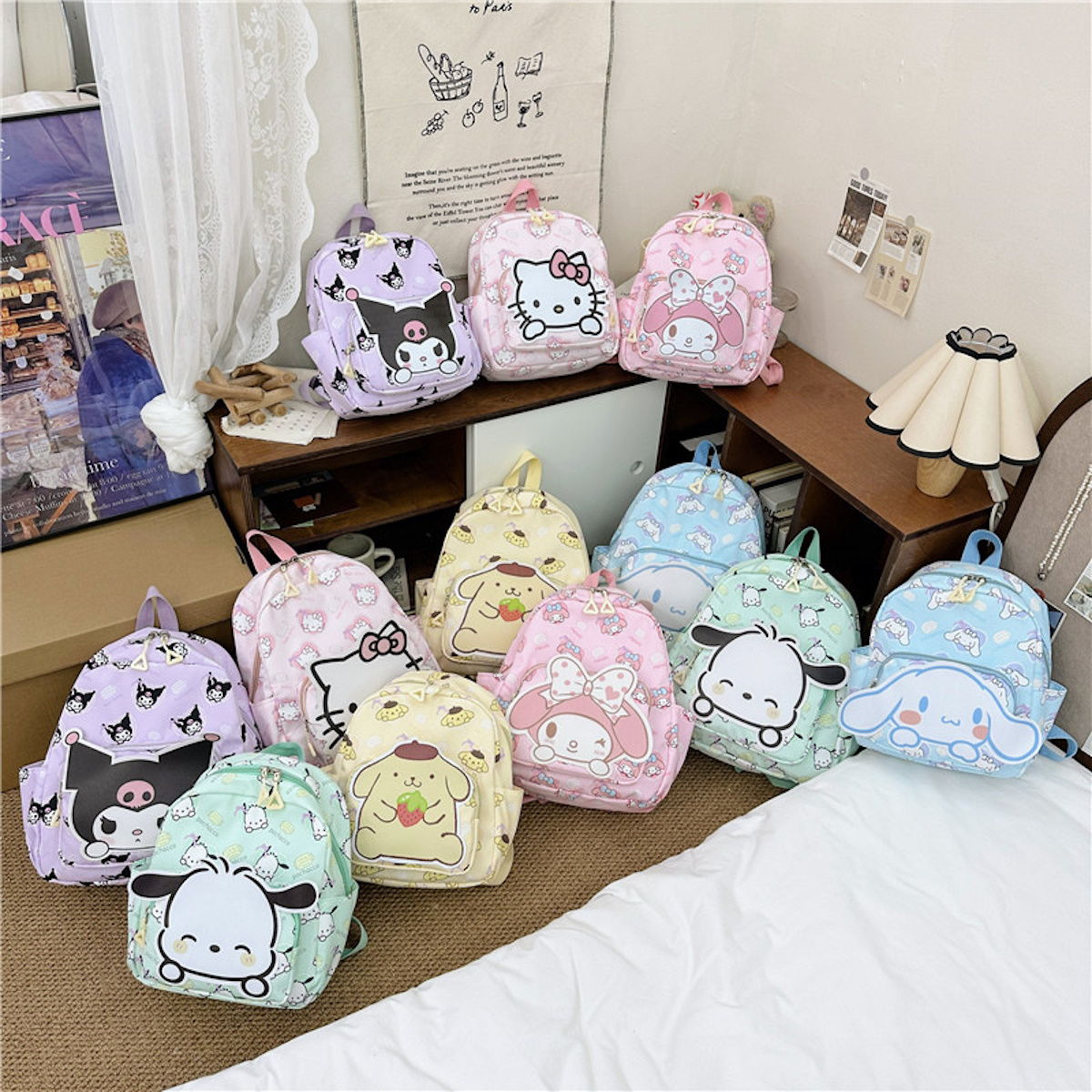 Personajes: Anime, Sanrio, Hello Kitty, Kuromi, Cinnamoroll, My Melody, Pochacco, Pompompurin;