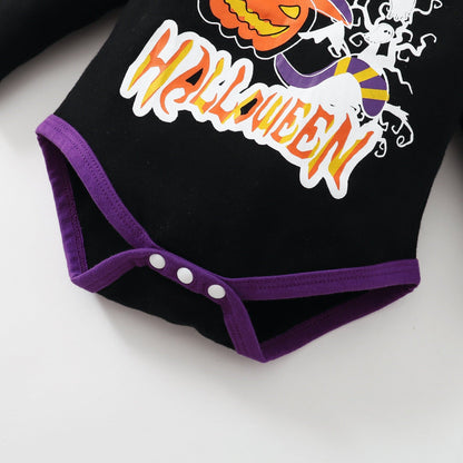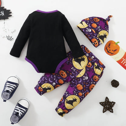 3PCS Baby Halloween Pumpkin and Witch Long-sleeve Romper Set with Hat