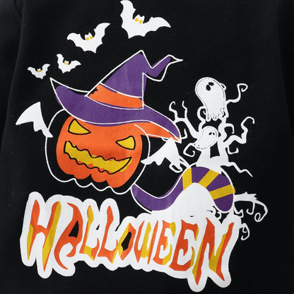 1* Black Halloween Pumpkin Bat Print Baby Romper;