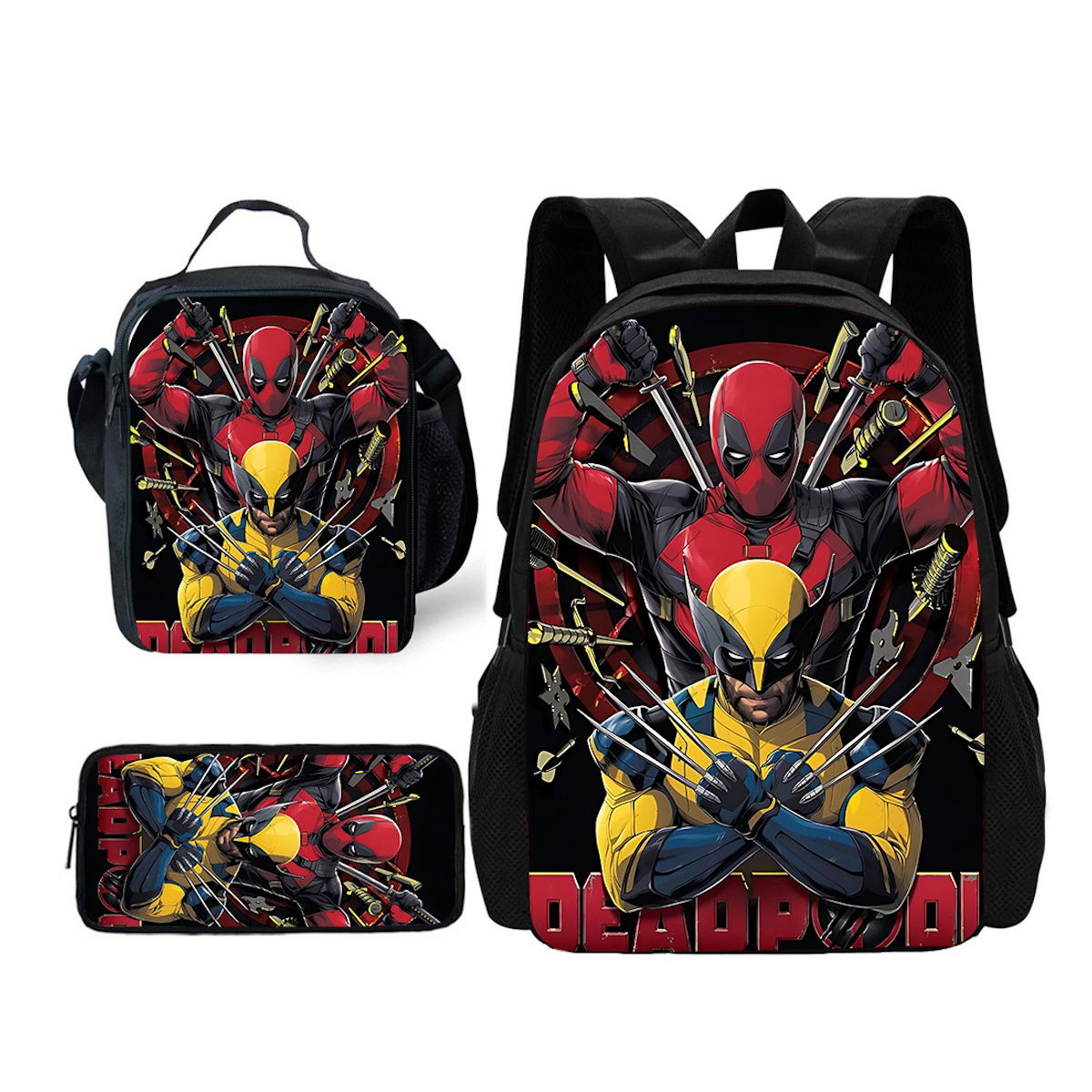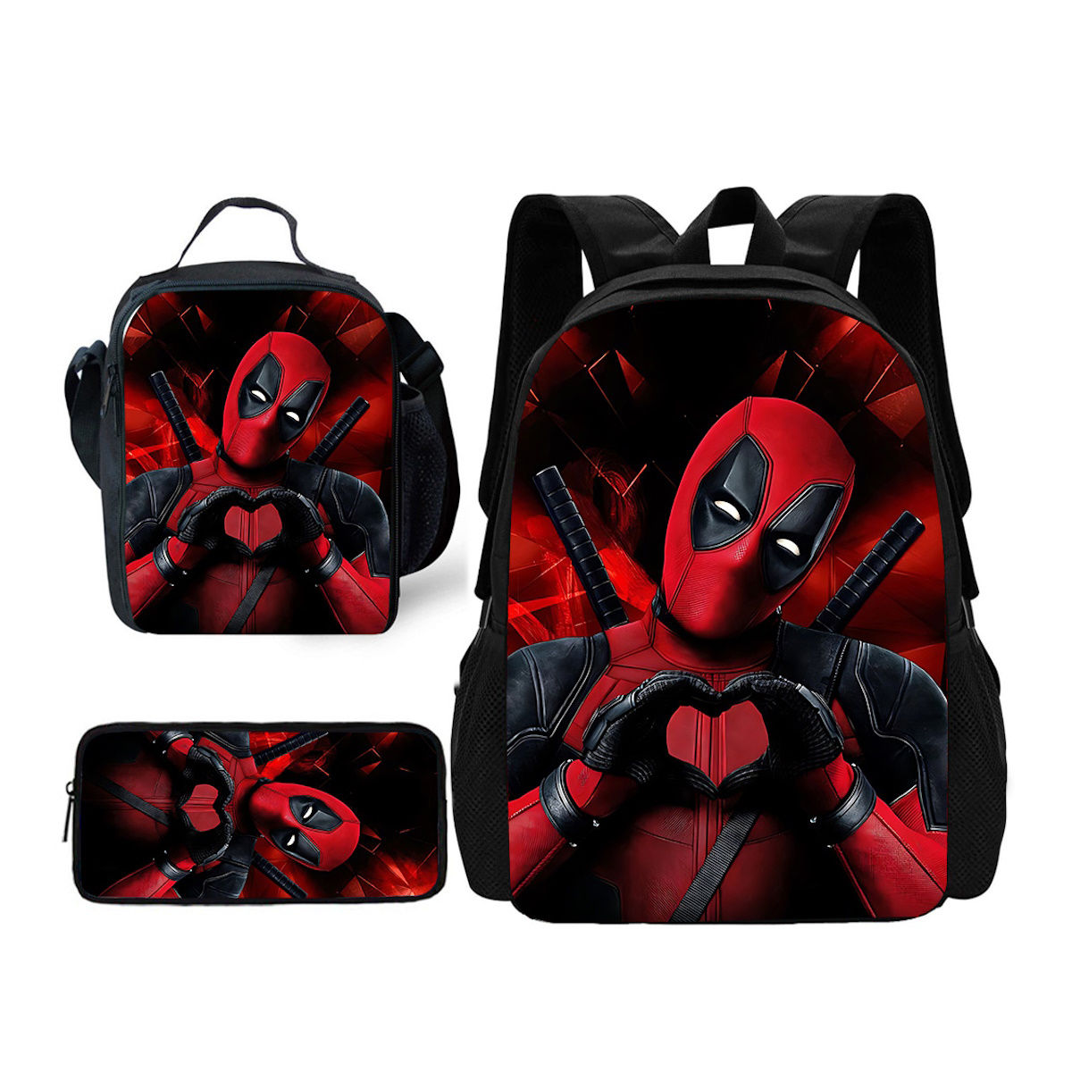 3PCS Deadpool Backpack and Lunchbox Pencil Case Set