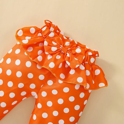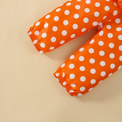 Details: Polka Dot; Pattern Print; Graphic; Ruffle Shoulder Details; Long Sleeve Rompers;