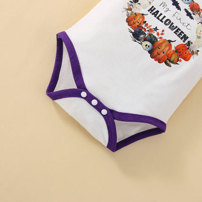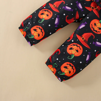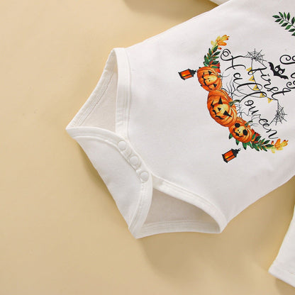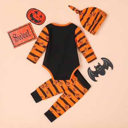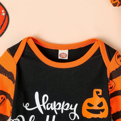 Category: Newborn Halloween Outfits > Pumpkin Print Baby Outfits > 3PCS Romper Pants with Accessories;
