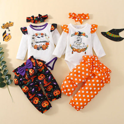 Item Name: Newborn Halloween Outfits Pumpkin Print My 1st Halloween Rompers Pants and Hats/Hairbands
