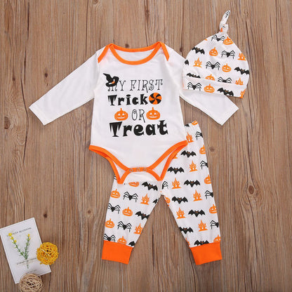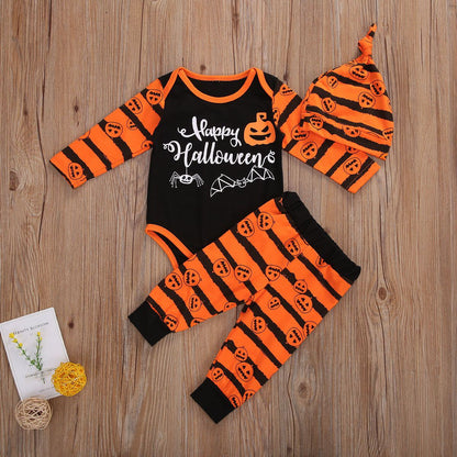 3PCS Newborn Halloween Outfits Long Sleeve Romper with Pants & Hat Hairband