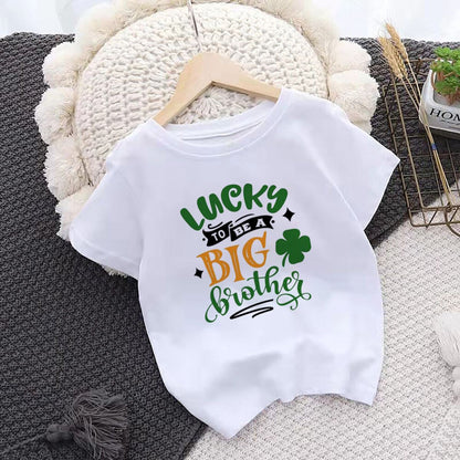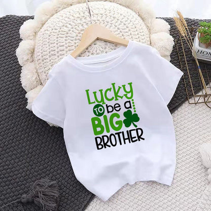 Letter Print Lucky to Be A Big Brother Childrens St. Patrick's Day Shirts